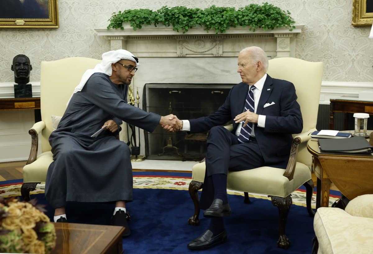 President Joe Biden and United Arab Emirates President Sheikh Mohamed bin Zayed Al Nahyan meet in the Oval Office at the White House on Sept. 23.