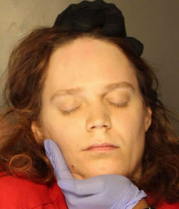 Jack LaSota refused to speak and kept her eyes closed while being photographed for a booking photo in Pennsylvania