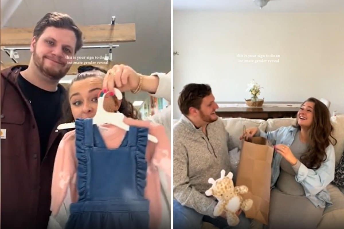 Jordan Benfatti shared a video of the way she and her husband decided to learn their child’s sex, which involved picking out one outfit for a girl and one for a boy, then asking the store worker to read their gender results for them and bag up the relevant baby items.