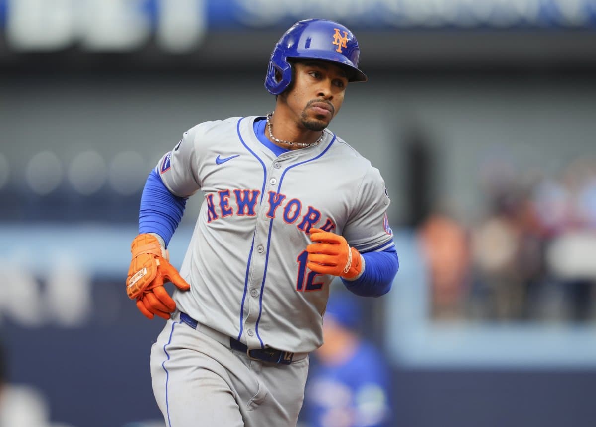 TORONTO, ON – SEPTEMBER 11: Francisco Lindor #12 of the New York Mets rounds the bases on his home run against the Toronto Blue Jays during the ninth inning in their MLB game at the Rogers Centre on September 11, 2024 in Toronto, Ontario, Canada. Lindor left Sunday’s game after just one inning.