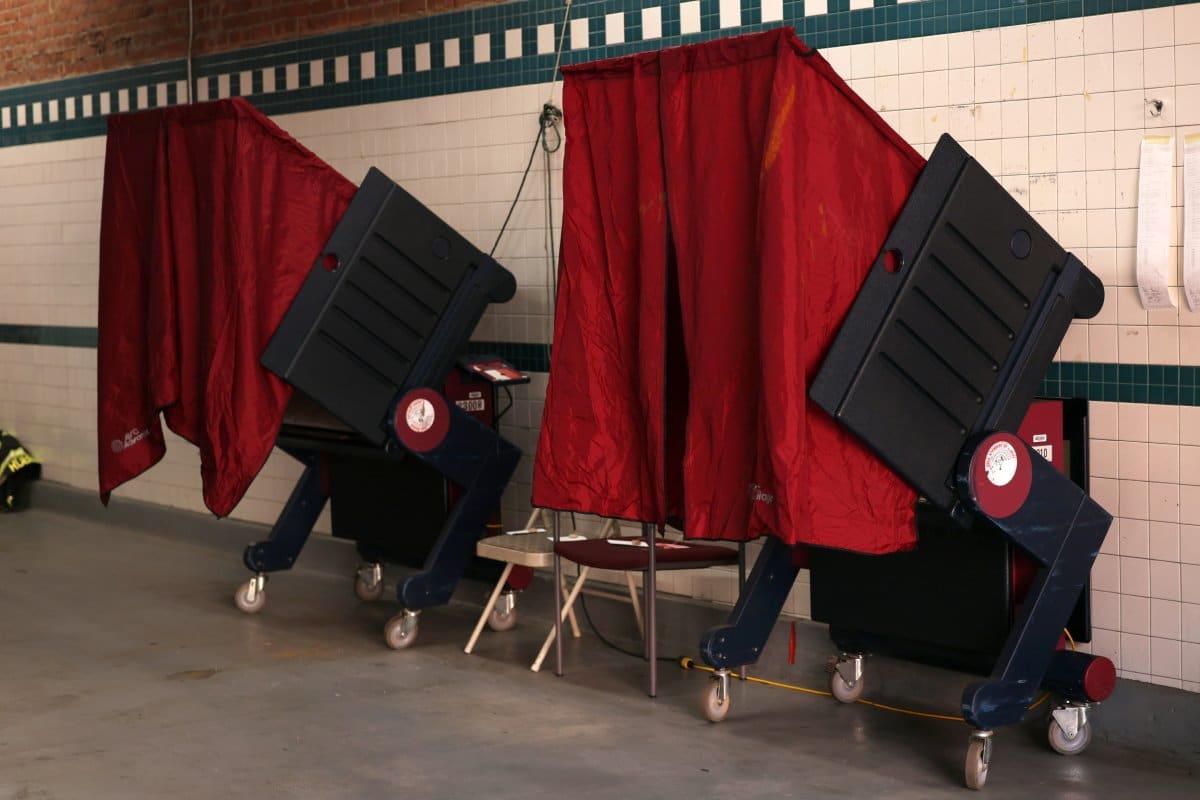 Voting booths set up at Engine Company No. 2 Firehouse in Hoboken, New Jersey, on June 7, 2022. New Jersey voters will cast ballots in a special election to replace a late congressman on September 18.