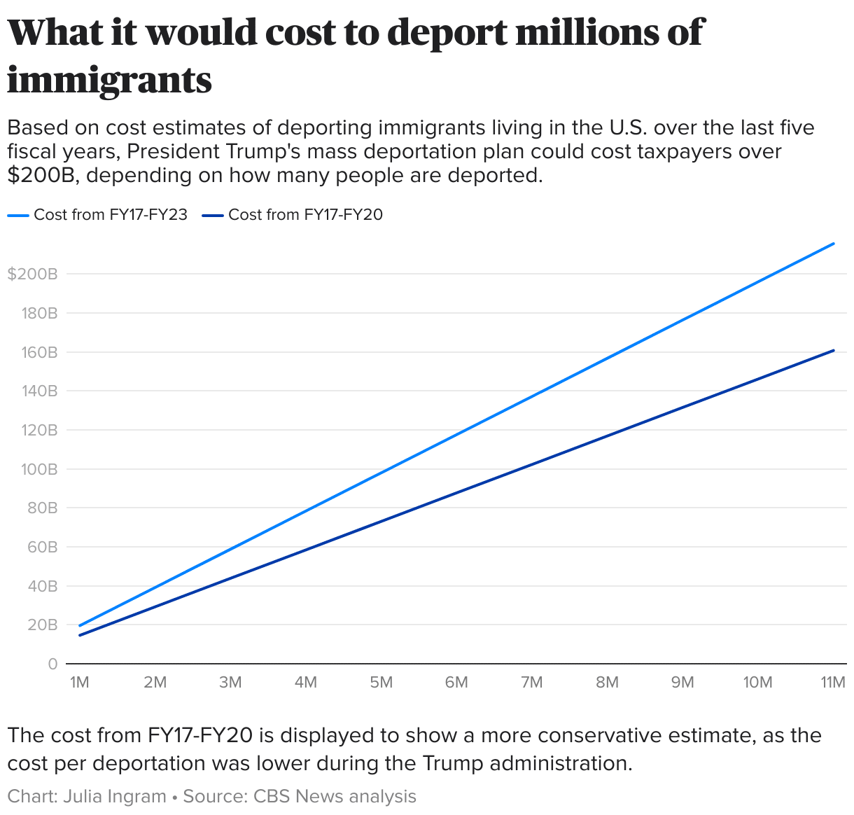 A similar analysis from the American Immigration Council put the total cost of deporting 11 million people even higher, at $315 billion.