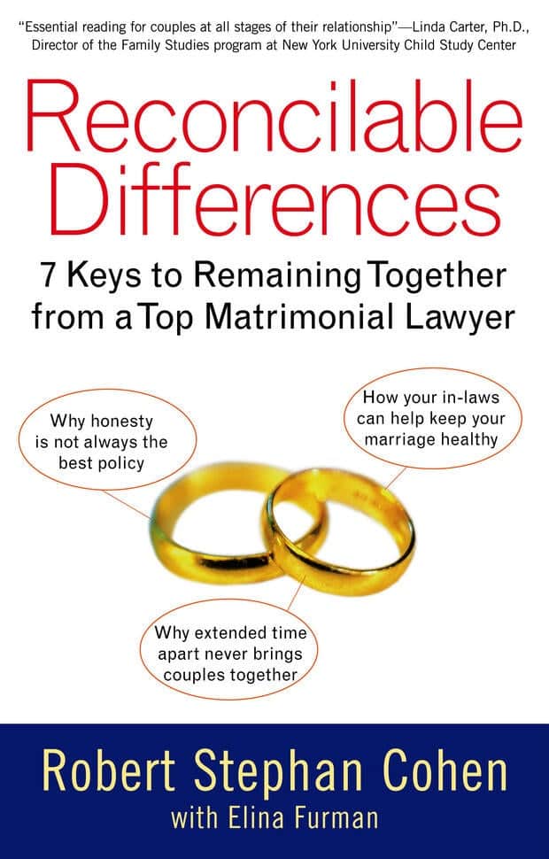 Cohen has even written an “anti-divorce” book, called, “Reconcilable Differences: 7 Keys to Remaining Together from a Top Matrimonial Lawyer.” His basic advice? “Try to stay married, if you can,” he said. “I had a guy come in to see me, he was 95 years old. And I said, ‘You’re 95 years old. Why are you getting divorced?’ He said, ‘I can’t live with my wife anymore, she smokes.’ And it was driving him crazy. And I said to him, ‘Can’t you put in a ventilation system or some system in the apartment that will work?’ And he just didn’t want to do it anymore.”